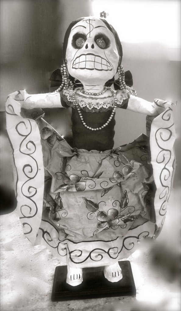 Handmade crafts and folk art are not just found in Mexico. With the popularity of Dia de los Muertos growing and more Americans learning about Day of the Dead, folk art travels. This Catrina piece was found in the decidedly un-Latin vacation spot of Fish creek, Wisconsin! I’ve kept my eyes open everywhere I go and have even brought home pieces from Brookfield Zoo. I look forward to sharing this collection of folk art with you in celebration of Dia de los Muertos!